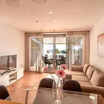 El apartamento ofrece a los huéspedes acceso a una terraza y una zona de estar con sofá blanco, y comodidades como climatizador, que garantizan una estancia agradable y relajante. Para mayor comodidad, este establecimiento ofrece TV de pantalla plana con canales vía satélite, asegurando que los huéspedes puedan relajarse durante su tiempo libre. El cuarto de baño está provisto de un bidé y bañera de hidromasaje, además de secadores de pelo y toallas de baño.